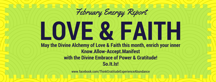 The month starts on a Wednesday (Faith) in activation. It is a 1 day (ELI) activation. If Power increase of the vibration of Gratitude was the key energy of the month of January. This month, we see Faith increase and expand LOVE for Power & Gratitude.