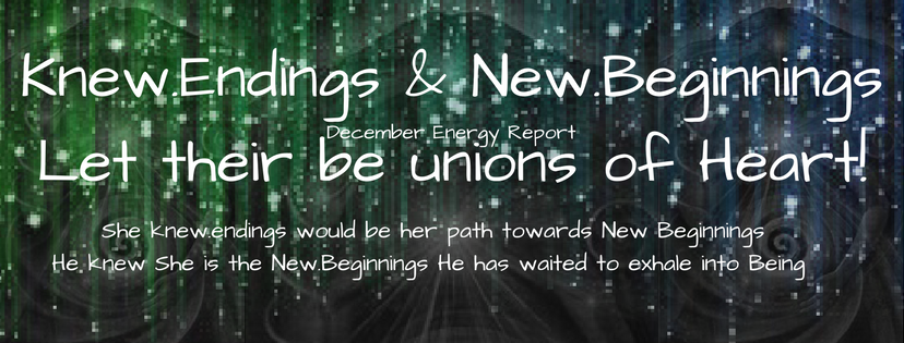 What a year of Knew Endings this has been… so many belief’s have been challenged and changed, as I look back over the year that comes together in this month, I see a fantastic shift in the masculine and feminine energies, that have now come together and the year of Knew.Endings, in its 12th month or the month of Us that has come!